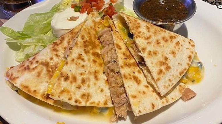 Although it's technically in the appetizer category, the chain makes sure that the quesadilla contains a bountiful variety of ingredients. One reviewer commented their partner ate it as the main attraction, indicating the offering could reasonably feed a single person. But assuming it isn't strictly about stuffing one's gullet, the masses overwhelmingly approve the starter as a delectable culinary concept. The "memorable, spicy flavor" won over one visitor, while another diner applauded the chain's sensational recipe. In their words, "This dish has a kick but just enough to make it interesting."