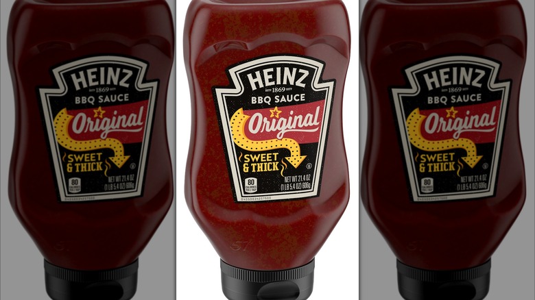It's possible to pick a healthier barbecue sauce without reading every label at the store. We've noticed that barbecue sauces with the word "sweet," a type of sugar, or a type of fruit in the name often have more carbs and sugar than some other options. Something else to look for is the types of sweeteners the company uses and any questionable preservatives. The sauces all contain vinegar and sweeteners, which should preserve them just fine. Still, some companies go a step further and add other preservatives as well. There's also far more sodium in these unhealthy barbecue sauces than you would think. The healthier sauces are more often the original version offered by the brand or ones with smokiness rather than sweeteners leading the flavor profile. However, this generalization isn't always true.