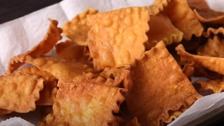 Next time you're making fun snacks, you have to try lasagna sheet tacos. The only issue is you'll have to listen to endless compliments about how clever you are to come up with such a cool idea. Take the praise, nobody is going to tell. Cook the noodles first and then create bitesize squares. Grab either side of the pieces with a pair of tongs so that they curve up like little boats. Be careful not to squash them shut at the top. Gently lower them into oil while you hold on, being mindful of splatters. They will keep their shape and provide mini-tacos for you to fill with whatever goodies you like. What about a meat, tomato, and cheese lasagna-style filling?
