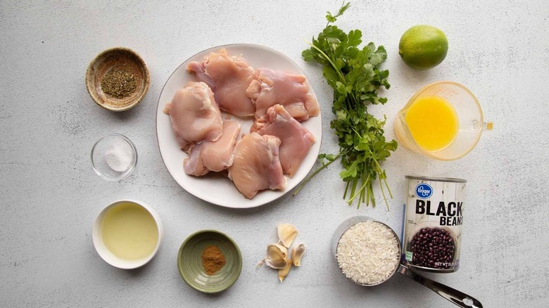 Shungu uses boneless, skinless thighs for this recipe, marinating them in a mixture of orange juice, lime juice and zest, olive oil, garlic, cilantro, oregano, salt, and cumin. She then eats the chicken with a side of white rice and canned black beans that are stewed together with more olive oil and garlic.