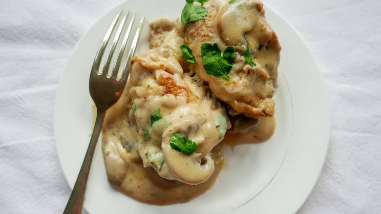 Bone-in chicken thighs form the base of this luxurious, creamy Instant Pot chicken dish that's sure to become a new household favorite. Chicken is seared to bring out its best flavor thanks to the magical powers of the Maillard reaction. This also creates a base for a rich sauce made with garlic, mushrooms, and chicken broth. Sour cream and Parmesan add richness to the resulting sauce that's just begging to be soaked up with a hunk of crusty bread.