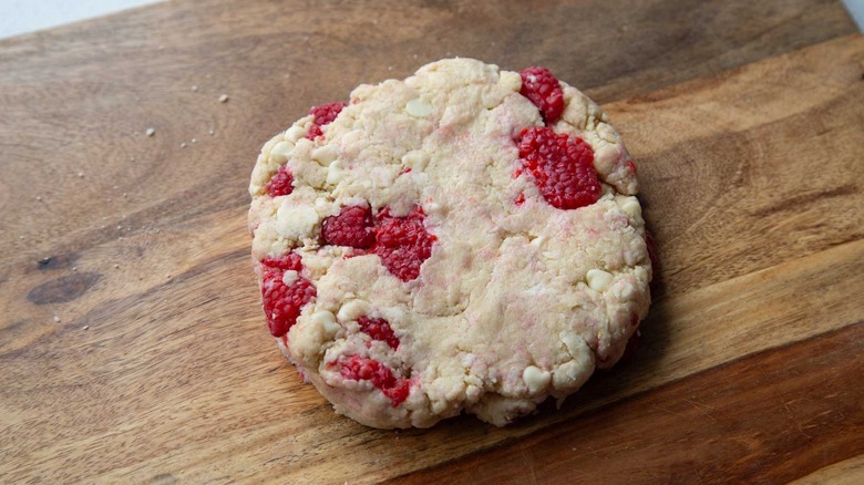 You might be tempted to pull out your trusty stand mixer and whip these up without getting your hands dirty, but that would be a mistake. "Using a stand mixer would result in overmixing the dough, which will make for tough scones," Shungu says. "It would also squish the raspberries. Always hand mix these." Finally, to give these scones a bakery-worthy aesthetic, Shungu explains that brushing cream on top right before putting the scones in the oven gives them a shiny finish.