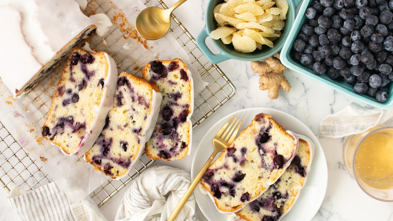 Blueberries, whether they're used in pies, cakes, or beverages, are often teamed up with lemons, with one such example being our lemon-blueberry cake recipe. Still, blueberries also go well with other, more unexpected ingredients such as bananas and peanut butter, both of which feature in our blueberry smoothie recipe. Some cooks have even experimented with using blueberries in homemade pasta, which is certainly one way to liven up a lasagna. Mashed developer Patterson Watkins, however, isn't doing anything quite so out-of-the-basket with her blueberries. Instead, she pairs them with ginger to flavor a quick bread.