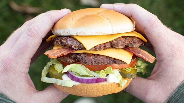 Unfortunately, reality often doesn't align with expectations, especially if those expectations are sky-high. Fast food burgers can be delicious, but consistency is a gamble. Plus, they often pale in comparison to your favorite local spot — but that's beside the point. If you've fallen into the trap of highly rated but mediocre or downright bad fast food burgers, you're not alone. According to diners at these fast food chains, the following burgers are sorely overrated.