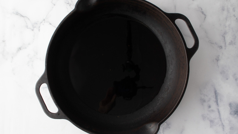 - Fill a large skillet with enough oil to generously cover the bottom, roughly ⅛-inch high. Heat over medium.