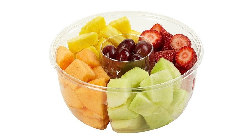 Last and maybe even least, on the list is Costco's fresh cut fruit tray. This tray is made for those who want a healthy option without the fuss of preparing anything. It seems that most consumers don't wait for a special social gathering to purchase this platter. Much like the vegetable tray, shoppers will also buy this fruit tray to have healthy snack options during the week. It consists of a variety of fruits, including yellow and green cantaloupe, strawberries, pineapple, and grapes, although this makeup may change depending on the season and location.