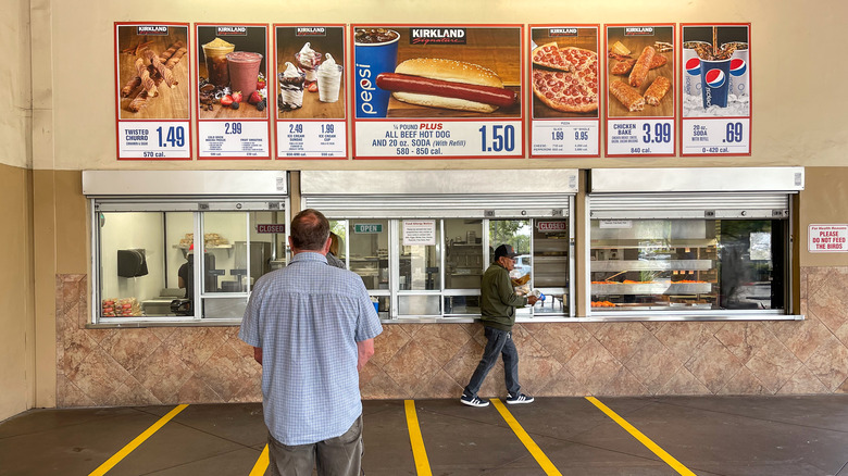 If your local Costco has an outside food court, just walk right up to the window and place your order, no questions asked. If you're visiting a Costco with an inside food court, it's likely you'll need to enter through the exit to find that glorious display of cheap eats. If there's any doubt though, just ask a Costco employee at the door. They'll be glad to point you in the right direction — card or no card.