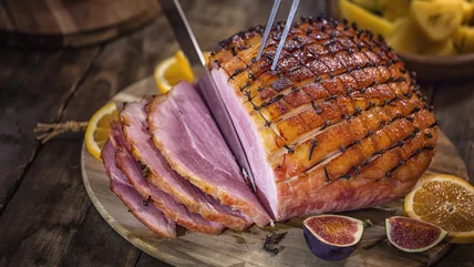 While holiday hams are commonly accompanied by a honey, maple, or brown sugar glaze, adding pineapple or orange juice into the mix creates a fruit infusion that allows those naturally sweet yet tart citrus flavors to permeate the meat. The vibrant freshness is necessary for some cured varieties of ham with a prominent tasting note of salt. Similarly, incorporating Dijon mustard into your glaze offers a tangy element that complements plain fresh ham's naturally mild flavor while balancing the glaze's sweetness.