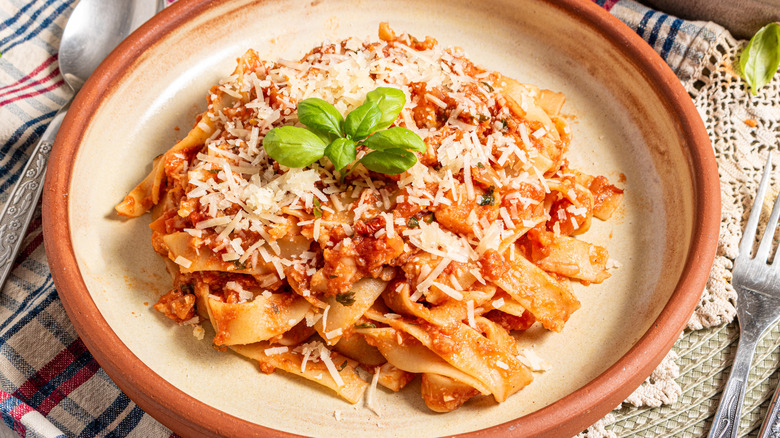 If you want to infuse this dish with a boost of protein, Manolova has several ideas, starting with beans and legumes. She suggests lentils, noting that they give the sauce a great texture, whereas "black beans, add a rich and earthy flavor to the sauce." Meanwhile, soy protein like crumbled tofu and tempeh "can mimic the texture of ground meat." Finally, she recommends trying quinoa, which also infuses the dish with nuttiness and a complex texture.