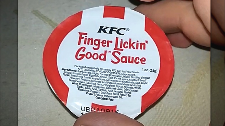 KFC's famous slogan made its grand return to its marketing campaigns in 2021, but Finger Lickin' Good sauce became another notch on the list of KFC items that didn't last. Instead, the brand introduced a new signature sauce to replace what Mashed determined was the worst signature fast food sauce to ever exist. The newbie to KFC's condiment game was given the (hopefully) unproblematic name of KFC sauce, and is described on the restaurant's website as being "a smoky blend of tangy and sweet flavors."