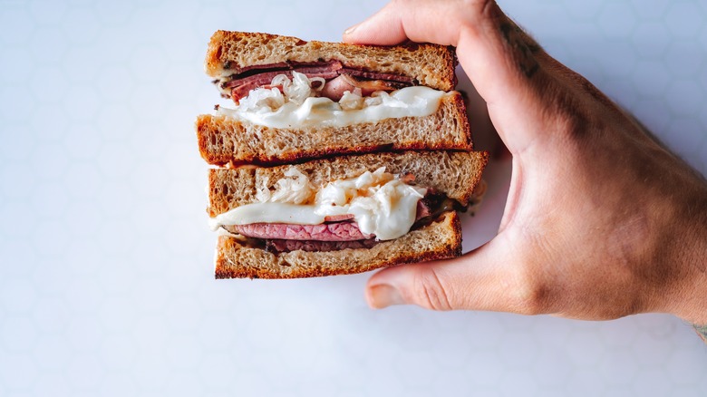 That's because perfecting a Reuben requires a balance of flavors and textures that can take trial and error to perfect. Too much sauerkraut, for example, and you run the risk of a soggy sandwich. On the other hand, if the rye bread has been sliced too thick, your sandwich may be dry, while too much corned beef may make the resulting meal too salty. Like we said, it's an art.
