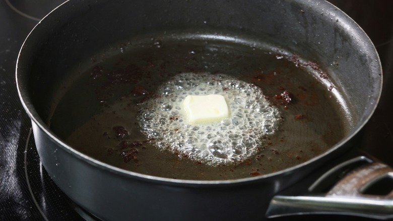 - Drain excess beef fat from the skillet, leaving around 1 tablespoon, then add the 1 tablespoon butter.