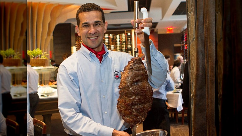 While Fogo de Chão specifies that its beef is sourced from U.S. vendors that care about animal welfare, the chain is silent about the grading of its meat. Nevertheless, Fogo de Chão's Fort Lauderdale General Manager, Wanderson Oliveira, disclosed in an interview with Mashed that the restaurant offers USDA Choice cuts or better. The steaks are then aged for at least 21 days to achieve optimal tenderness and flavor. Fogo de Chão also serves wagyu beef, including a dry aged tomahawk ancho (ribeye) aged for 42 days.
