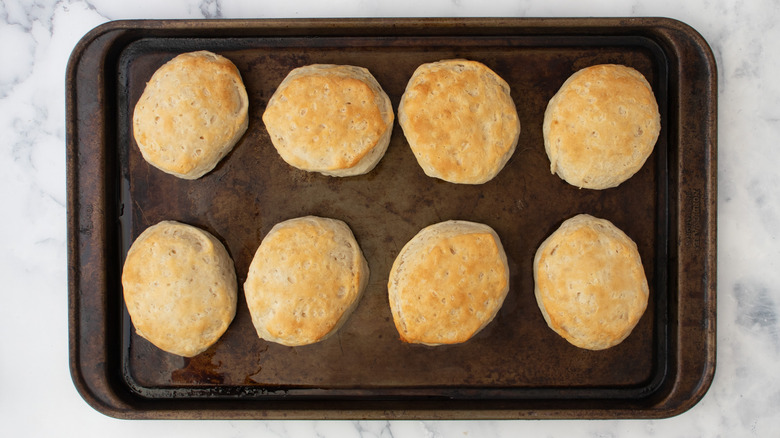 - Place the raw biscuits on a baking sheet. Once preheated, bake the biscuits as instructed.