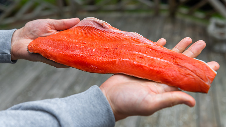While many salmon patty recipes use canned salmon, opting for fresh fish can give your patties more of a gourmet feel. Of course, canned salmon scores points for convenience, requiring no pre-cooking before adding to the mixture. But, using fresh salmon will make your patties extra juicy, meaty, and flavorful. To elevate your patties even further, we recommend selecting a premium variety of salmon such a king or sockeye. These types of salmon are known for their rich flavor and firm texture, making them perfect for creating the ultimate salmon patties.