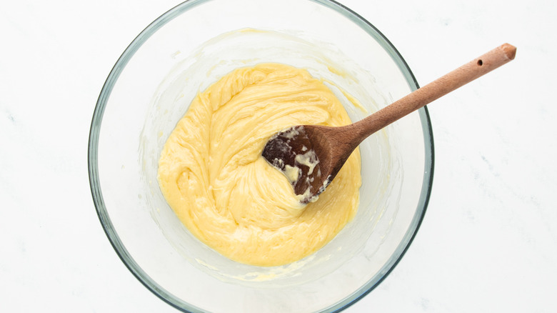 - Add the lemon zest, lemon juice, and food coloring and stir to combine.