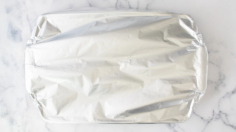 Cover the casserole dish with aluminum foil and place in the oven. Bake for 30 minutes.