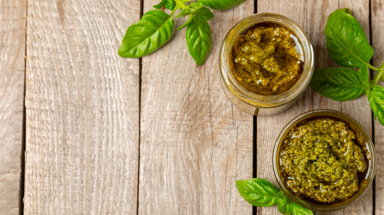 If you're feeling ambitious, homemade pesto is even better. Of course, anyone who's decided to use store-bought pizza sauce probably doesn't want to whizz up pesto from scratch. Still, on the off-chance you have a homemade batch languishing in your fridge, now's the time to use it up.