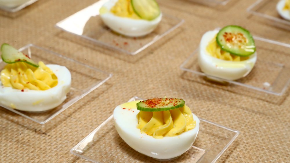 Call them what you will, deviled eggs are an ever-popular appetizer and buffet side dish, but there are a number of people who can't enjoy them without first rechristening them, so they can disassociate themselves from any whiff of brimstone (the Satanic, not the rotten egg kind). Other names they sometimes go by are "stuffed eggs", "dressed eggs", "salad eggs," or "mimosa eggs" (no relation to the popular brunch cocktail), but the cutest variant is one evidently favored by Katy Perry's mom — "angeled eggs".