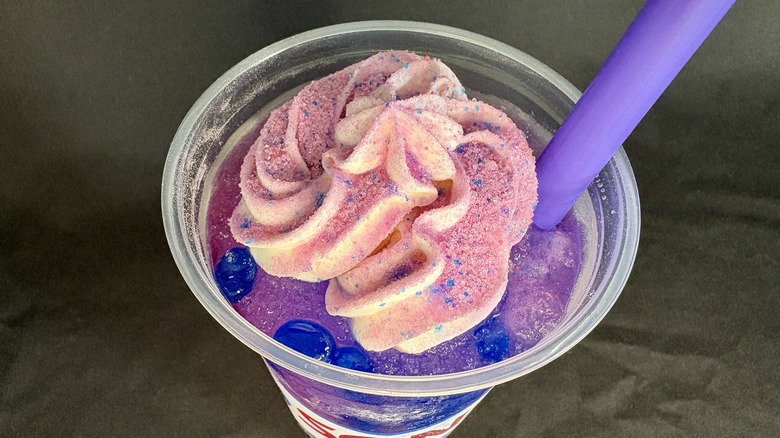 As with most things featuring cotton candy flavor, this slush packs in the sugar. With 101 grams in a serving, it takes the silver medal in terms of sugar content on Sonic's Flavorista Favorites menu, coming in just behind the 105 grams of sugar in one of my favorite drinks, the Lemonade Cream Cooler. The sodium levels are also high, at 180 milligrams per serving. If you're looking for a nutritional silver lining, the drink does pack 89 milligrams of calcium, but let's be honest: magic has consequences, and in this case, it's sugar and salt.