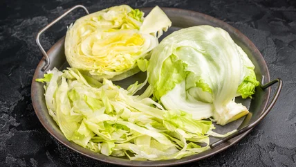 With iceberg lettuce, there are generally three methods of preparation: you can cut your lettuce into wedges, shred it, or cut it into large leaves. To shred your lettuce, cut the head in half and then cut each half into very thin slices. If you would prefer larger leaves, repeat this same process, but make your slices slightly larger. For a wedge salad, slice the head in half and cut each half into two or three wedges.