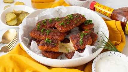 If you want to skip the deep-frying entirely, though, air frying is your best option. Simply follow the instructions for air frying as recommended on the sticks' packaging. Watkins doesn't recommend baking the sticks because they won't have that crispy-crunchy exterior, and they'll become instantly soggy once sauced.