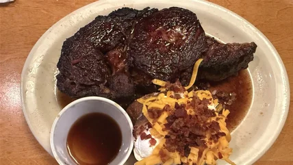 You can ask for a Pittsburgh-style steak at any steakhouse, but multiple people swear by Texas Roadhouse specifically. "This was, by far, the best cooked steak [my significant other] has had in several years at a restaurant," wrote a TripAdvisor reviewer. "Anytime I go to Texas Roadhouse, I always get my steak Pittsburgh style, which gives it a really salty, crispy, hard crust," says TikTok creator @renereocooks in a review. One Facebook user who ordered a medium-rare prime rib cooked Pittsburgh style raved, "This was better than at least half of the major steakhouses I've been to in the past 50 years. Mind-blowing!"