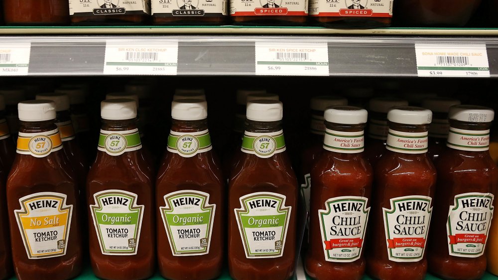 In today's Heinz ketchup, there is nothing too adventurous on the ingredients list. Tomatoes, vinegar, corn syrup, salt, spices, and some onion powder clearly are not too out there (via Heinz). But ketchup was not always so innocuous. Believe it or not, ketchup used to include fish entrails, soybeans, and meat byproducts (via History Channel). Um, yum?
