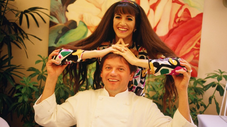 From the beginning of their relationship, Barbara Lazaroff and Wolfgang Puck embodied the old saying "opposites attract." He was quiet, frugal, and conflict-averse (according to Smart Money), while she was an extrovert's extrovert — fond of colorful, revealing clothing, shopping sprees, speaking her mind, and asking without embarrassment for what she wanted. This ended up working in Puck's favor, since once Lazaroff understood his talent and potential, she became his most vocal champion, pushing him (however reluctantly) into the limelight.