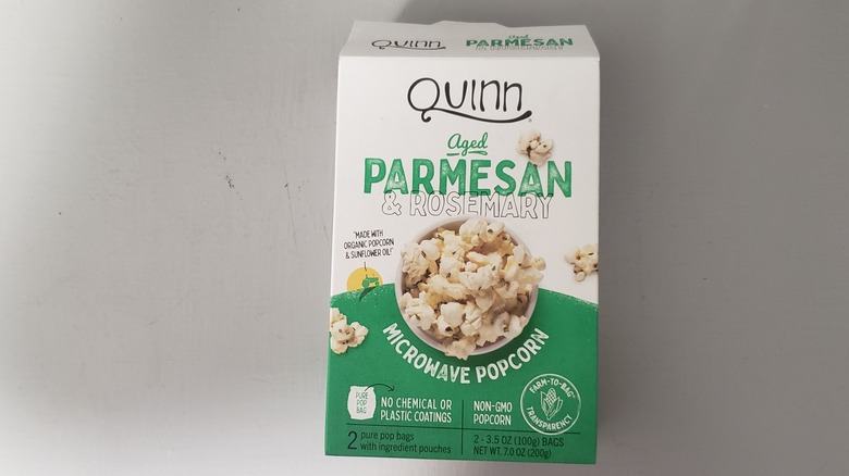 Quinn's popcorns are a little more interactive than your standard push-a-button-and-wait varieties. The flavoring all comes in a little packet inside the box, which you then pour over the popcorn after it's done popping. The powder for the standard butter and sea salt variety is fairly indistinguishable from laundry detergent, though it does smell a little better. Still, it's the sort of thing you look at and think, "So...what exactly is in there and why am I putting it on my popcorn?"