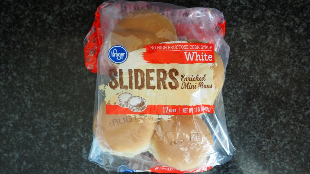 White Castle's buns have been baked for their restaurants at their Evendale, Ohio, bakery for over 50 years. It's pretty impossible to replicate the exact bun, but you can get pretty close with store-bought options. The ingredients listed on White Castle's frozen sliders are pretty close to several items we found in the bread aisle. We landed on Kroger brand white slider mini buns, but Pepperidge Farm Bakery Classics white slider buns were pretty similar, too.