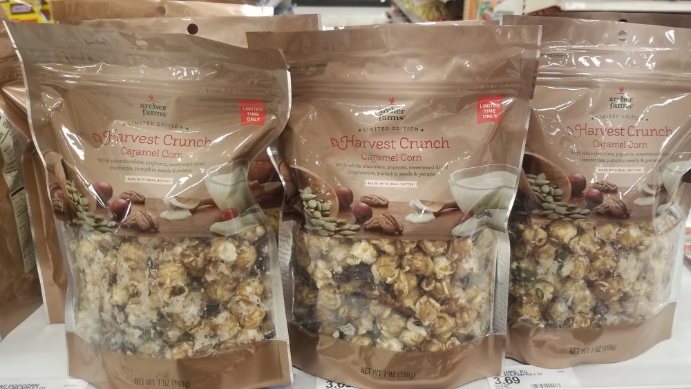 If you're looking for something super delicious that doesn't require you to turn on an oven or fuss with defrosting, try Target brand Archer Farms limited edition Harvest Crunch Caramel Corn or their limited edition Caramel Apple Corn with Apple Slices. Both flavors are very tasty, and after a couple of crunchy bites you may even decide you don't want to share. The Harvest Crunch Caramel Corn is made of caramel popcorn covered in white chocolate and mixed with cranberries, pecans, and pumpkin seeds. It is the perfect blend of savory and sweet, and will have you and your guests eating it by the handful. Be aware, you may need to buy more than one package as each bag only contains seven ounces. The Caramel Apple Corn with Apple Slices is also a seasonal favorite definitely worth stocking up on, as one reviewer wrote they wish Target would have this flavor year round. We are with them!