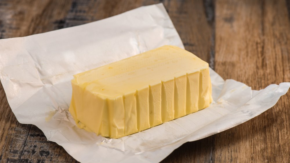 For one, it's the color. Irish butter is often a satisfying shade of yellow that's deeper than most regular butter brands. We tend to eat with our eyes first, and yellow is the color most fast-food marketers choose for a reason: it's associated with comfort and contentment (via Insider). That yellow in Irish butter, though, isn't just coloring like annatto, used to brighten up foods like Velveeta and Goldfish — it comes from the beta-carotene Irish cows ingest in Irish pastures, which then makes its way into their stored fat — and then their milk (via Real Simple). Beta-carotene is naturally found in plants, like grass, and the Irish climate in particular tends to help the grass these cows dine on become a vibrant green.