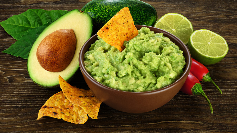 "We make guacamole all the time and just get creative," he says. While he prefers his guac with serrano peppers and olive oil, his wife avoids the spice and just adds crumbled feta (via Popsugar.com). And the guac, the must in the Lopez household for any game night or party, is not just used as a dip but also as a spread on sandwiches and tacos that are filled with slow-cooked pulled pork or chicken.