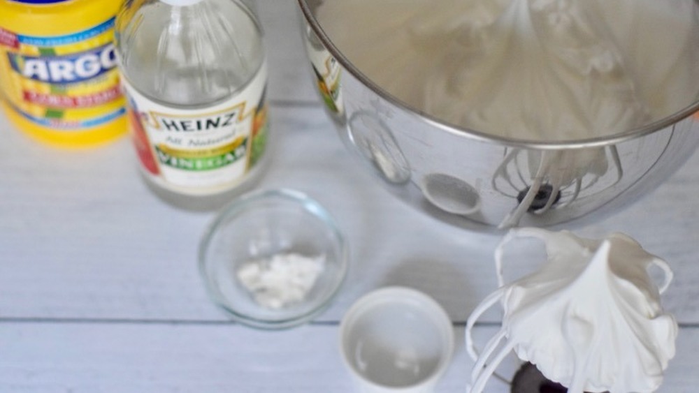 - Add remaining ½ teaspoon cornstarch and vinegar to meringue and fold in by hand with spatula.