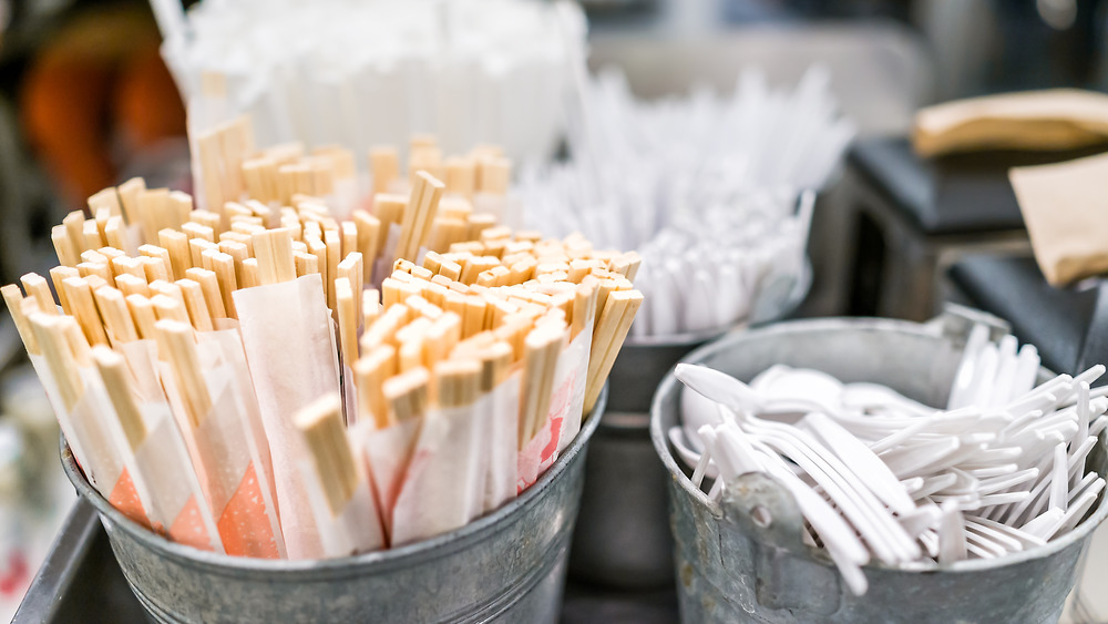 Maybe you don't have a fridge full of chopsticks, but we are betting that you have a few wooden chopsticks lurking around a kitchen drawer somewhere — especially in this, the Year of Takeout. The trick is to see your chopsticks as more than just eating utensils, which will open you up to an entirely new world of possibilities. And when is a chopstick not a chopstick? When it's a Jenga block. Kitchn argues that, thanks to an ingenious Reddit hack, your loose chopsticks are the perfect way to create shelf space in your fridge, particularly for those pesky bowls without lids; the ones that have tin foil or cling film stretched over the top.