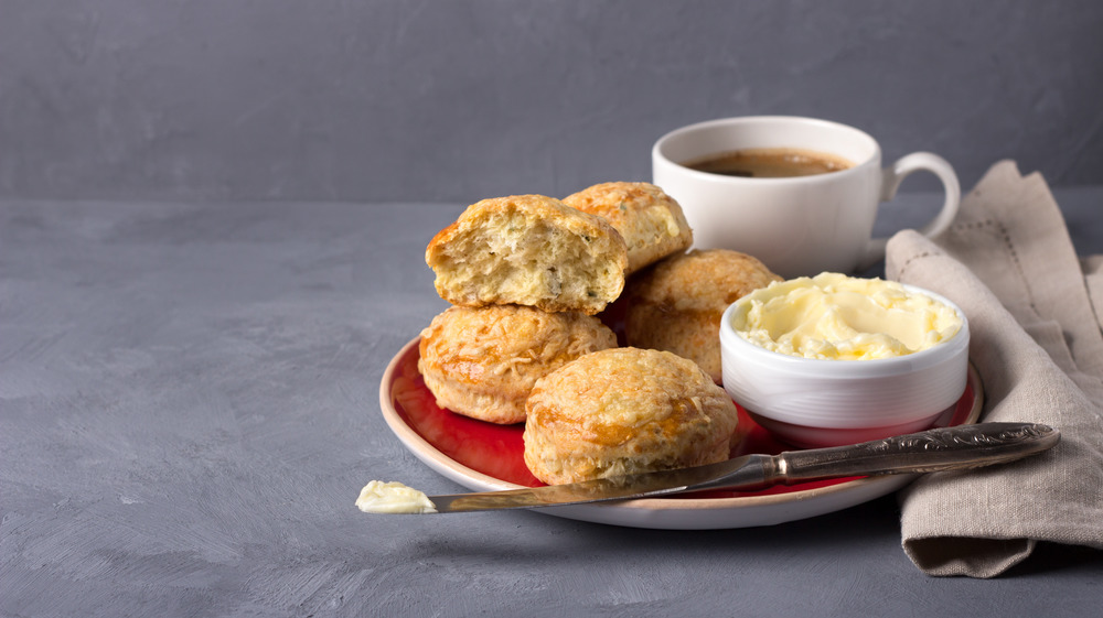 If you also aren't familiar with scones (or haven't seen Derry Girls yet), they're a simple baked good, a bit like a very dense muffin, that originated in the British Isles and date back to the 16th century at least (via The New York Times). They can be sweet or savory, and are often paired with a cup of tea and spreads like butter, jam, or clotted cream.