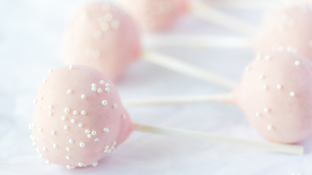 Luckily for those of us with a serious cake pop craving, food writer Molly Allen has provided us with a copycat Starbucks cake pop recipe to bring that coffee shop magic home. It's really as simple as a cake that's been crumbled up and stirred together with vanilla frosting, popped onto a lollipop stick, and dipped in pink candy coating. Many people buy boxed cake mix and frosting to make this treat, but if you're looking to make your pops completely from scratch, try out these recipes for cake pops that will wow everyone at the party.