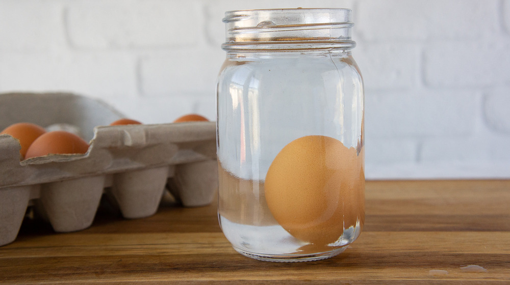 If you shake fresh eggs, which are likely to have those tiny air pockets, you won't feel or hear any movement inside the shell. However, if you give an older egg a shake, you'll likely feel and hear some sloshing — more so as the egg ages. However, there are some important details to remember here. In all our tests, even older eggs that sank still sloshed a bit in their shell, so this is really only a good test if you're after the freshest of the fresh, like for eggs Benedict.