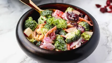 Sure, we love our carb-y salads, but sometimes, you need a salad that's actually on the fresh side. Well, step aside, boring old iceberg lettuce salad, because we've got a new recipe for you to try: this broccoli salad. We love this recipe because the broccoli holds up to the sauce really well -– it's going to be quite a while before your broccoli florets start getting soggy. This salad has the perfect crunch, too, making it irresistible even for those who don't usually love broccoli. And don't leave out the salted peanuts (unless you're allergic) –- they add a texture you won't be able to get enough of.
