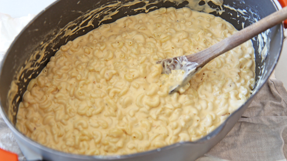 As for why he incorporated all those cheeses, Goldstein simply told Mashed, "These are the exact cheeses in the Trader Joe's recipe." Meanwhile, you may be wondering why he chose to employ evaporated milk instead of the real thing. As Goldstein explained, "Evaporated milk is just milk with some water taken out of it. This ingredient does some of the work for us because less water means already-reduced milk."