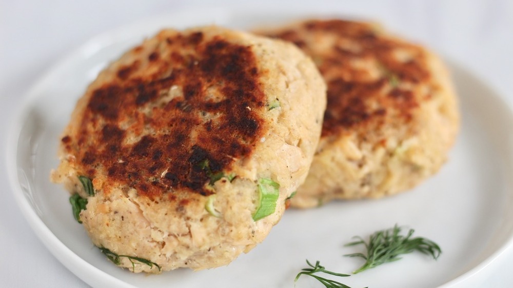 In order to whip up these patties, you will need canned salmon, fresh dill, onion, low-fat mayonnaise, lemon juice, panko breadcrumbs, Dijon mustard, 1 egg, black pepper, and cooking spray. A few cherry tomatoes, lemon slices, and fresh dill will dress up the platter nicely.