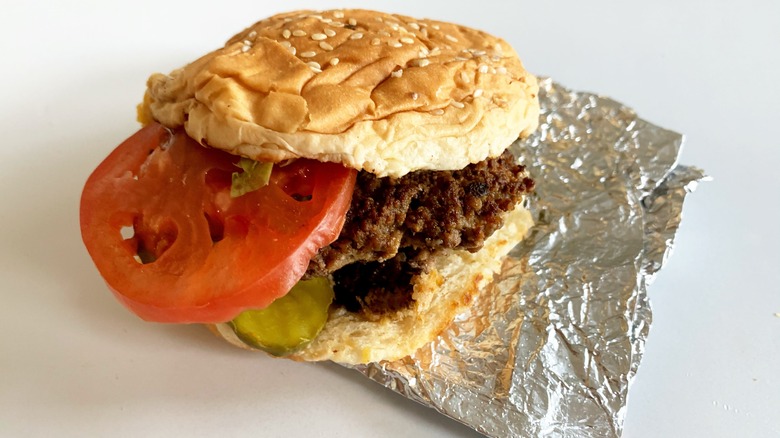 Here's the thing, though: as discovered with the bacon cheese dog, the Kraft American goo is actually pretty decent for what it is, especially when sandwiched between meats. And that's where Five Guys gets it exactly right. This is perhaps the only mainstream burger chain that's imaginative enough to dream up the easy yet groundbreaking concept of putting a cheeseburger's cheese between its patties. One bite of this all-star and you're left wondering why this isn't a layering industry standard. The cheese melts into the patties on either side and holds them together in a way that other, saucier options simply could not do. Not only does this make the burger more edible from a practical standpoint (you won't catch a Five Guys cheeseburger falling apart), but it also improves the flavor tenfold.