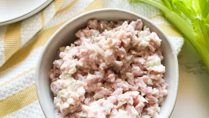Recipe developer and dietitian Kristen Carli came up with a deviled ham salad that tastes good atop lettuce or between two pieces of toasted bread or a roll.