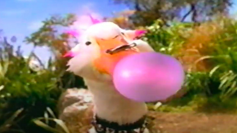 Floyd D. Duck made his mascot debut in the late '90s (via AdAge), starring in a TV commercial campaign aimed at teens, encouraging them to be themselves with a signature tagline — "blow your own bubble." Since then, he's appeared on all of Bubble Yum's packaging, bursting out of a bright pink bubble, clad in a spiked collar.