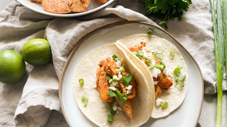 - Serve in tacos with green onions, queso fresco, and cilantro.