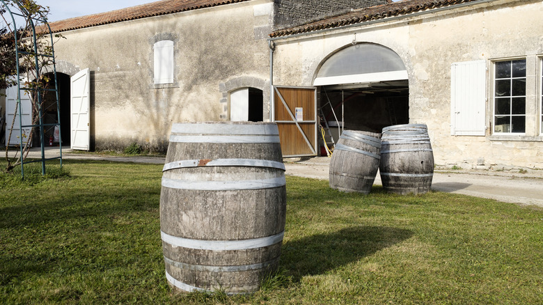 The resulting spirit, which is clear and has a peachy smell and a very high alcohol content (almost 150 proof) is known as "eaux de vie," (French for "water of life"). To make cognac, the eaux de vie is aged in oak for a minimum of two years (via Distiller).