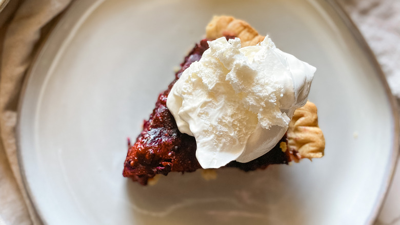 Before you get cooking on this delicious pie, you'll want to make sure that you have all the ingredients for it! First off is the star of the dish — your blackberries, which should be frozen. "I choose frozen berries whenever I am making pies because it ensures the best quality year-round," Carli notes. "If you have great fresh berries near you during berry season, you can use fresh, but you do not need to use as much cornstarch — take it down to 2 to 3 tablespoons." Carli goes on to explain that "The water in the frozen berries is released during cooking, and this makes for a very liquid pie if you do not use the cornstarch."