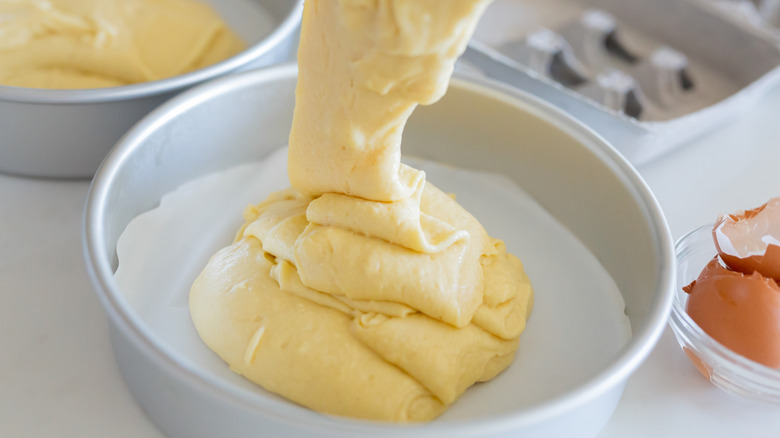 According to Sally's Baking Addiction, there are two ways you could be self-sabotaging when it comes to adding butter to your cake recipes. The first? Not using room temperature butter. Sure, it can be tempting to cut corners and throw a stick of butter straight from the fridge and into your stand mixer, or throw that stick of butter in the microwave to heat it up and then add it to your sugar and other ingredients, but that can seriously mess up your cake. This is because, as Bon Appétit breaks down, when butter is at room temperature, it's ideal for whipping, meaning it's ideal for holding air — air which then goes into your batter, making your cake light and fluffy. Butter that's too hot or too cold simply won't whip up the same way, resulting in a lackluster, too-dense cake texture.