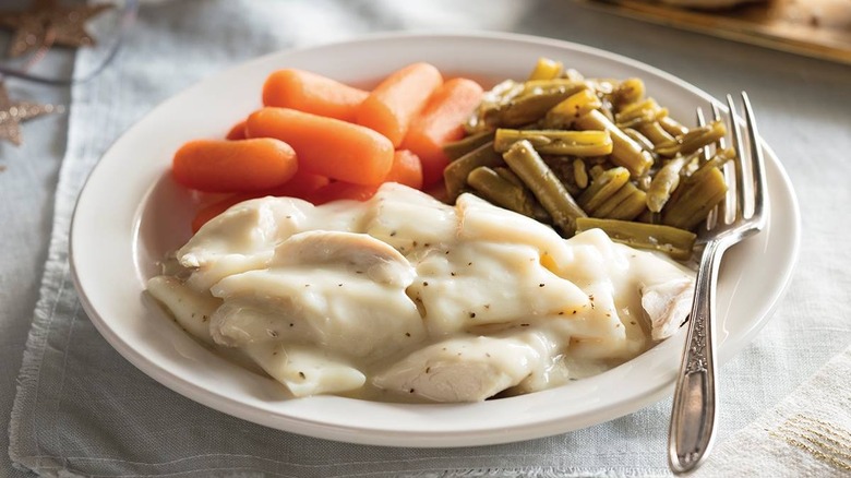 Receiving 18.76% of the votes was Cracker Barrel's Sunday Homestyle Chicken. Consisting of two crispy boneless chicken breasts, two sides, and a choice of either buttermilk biscuits or cornbread (via the Cracker Barrel website), this massive meal edged out the delectable Pecan Pancakes for second place in our survey by a mere three votes, but don't go questioning its popularity. The meal used to be strictly reserved for diners frequenting their local Cracker Barrel on Sundays but was so widely favored by patrons that in 2019, the chain announced that they would start offering it every day of the week (via PR Newswire).